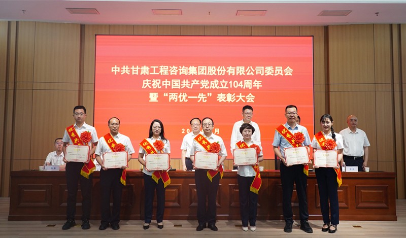 7月1日,甘肅工程咨詢(xún)集團(tuán)召開(kāi)慶祝中國(guó)共產(chǎn)黨成立104周年暨“兩優(yōu)一先”表彰大會(huì),回顧黨的輝煌歷程,弘揚(yáng)偉大建黨精神,全面展示集團(tuán)黨建工作成效和黨員干部昂揚(yáng)風(fēng)貌,激勵(lì)各級(jí)黨組織和全體黨員凝心聚力、擔(dān)當(dāng)作為,奮力推動(dòng)集團(tuán)公司高質(zhì)量發(fā)展邁向新臺(tái)階。集團(tuán)公司黨委書(shū)記、董事長(zhǎng)張佩峰出席并講話(huà),總經(jīng)理、董事陳一夫及在家領(lǐng)導(dǎo)班子成員出席,黨委委員、副總經(jīng)理孟康榮宣讀表彰決定,紀(jì)委書(shū)記、監(jiān)察專(zhuān)員師宗正主持會(huì)議。