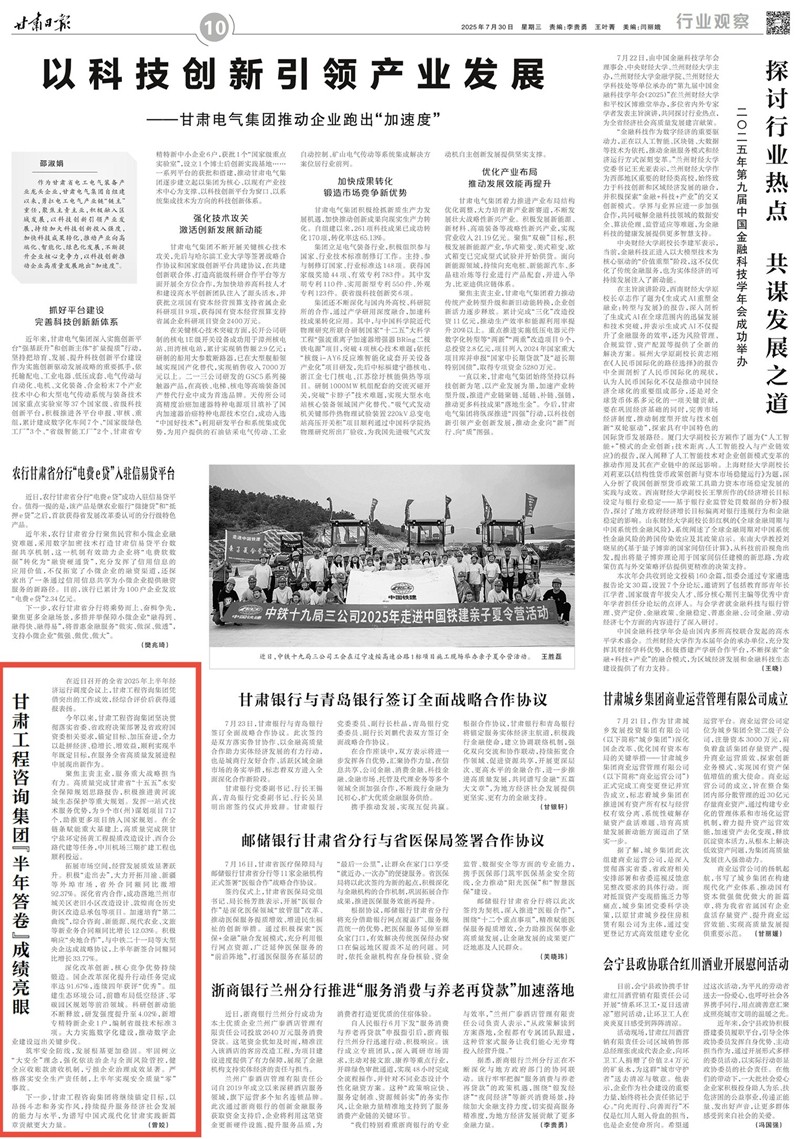 今年以來,甘肅工程咨詢集團(tuán)堅(jiān)決貫徹落實(shí)省委、省政府決策部署及省政府國(guó)資委相關(guān)要求,錨定目標(biāo)、加壓奮進(jìn),全力以赴拼經(jīng)濟(jì)、穩(wěn)增長(zhǎng)、增效益,順利實(shí)現(xiàn)半年既定目標(biāo),在服務(wù)全省高質(zhì)量發(fā)展進(jìn)程中展現(xiàn)出新作為。