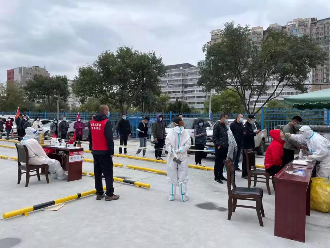“您好”“請不要擁擠”“提前打開健康碼”……這是土木工程院的后勤管理部工作人員在有序指揮前來進行核酸檢測的職工和家屬。