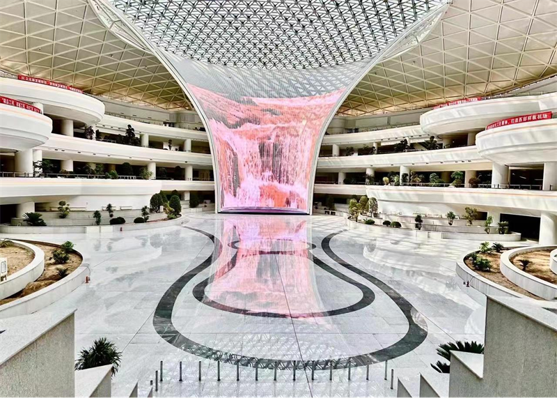 航站樓基礎(chǔ)工程中井樁數(shù)量高達(dá)10181根,鋼結(jié)構(gòu)由3.8萬個(gè)桿件拼裝而成,需設(shè)置50多個(gè)吊裝提升點(diǎn),最大提升高度18米。