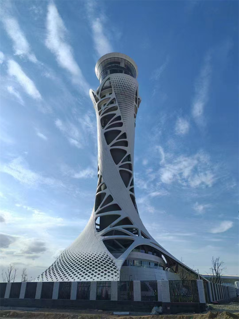 項(xiàng)目總投資13.43億元,塔臺(tái)建筑高度99.9米,是全國空管分局有史以來建設(shè)規(guī)模最大、投資最大的空管建設(shè)項(xiàng)目,創(chuàng)造了多項(xiàng)分局站建設(shè)第一。項(xiàng)目總體以“敦煌飛天”與“絲綢之路”為靈感,塔臺(tái)采用鋼結(jié)構(gòu)斜交網(wǎng)格外框+鋼筋混凝土核心筒設(shè)計(jì),空管工作區(qū)采用鋼筋混凝土框架+首層BRB支撐+基礎(chǔ)橡膠隔震支座設(shè)計(jì),鋼結(jié)構(gòu)總量達(dá)3561噸。