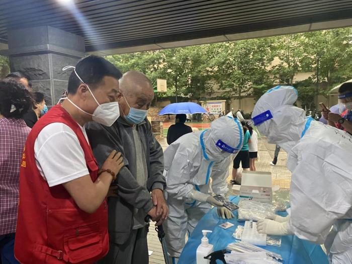 盛元小區(qū)一共有5個(gè)單元,500多戶,2000多人;新港城小區(qū)屬于城關(guān)區(qū)比較大的居民小區(qū),分為ABCDE五個(gè)區(qū),共有300多個(gè)單元,5200多戶,16000多人居住。面對(duì)這些情況,陳萬國(guó)、李朋袀和白萬景等志愿者沖在前面,維持檢測(cè)秩序,布置核酸檢測(cè)點(diǎn)位,分發(fā)甘肅抗疫中藥包,投放樓棟垃圾,匯總登記問題并與社區(qū)和醫(yī)務(wù)人員溝通逐一解決。接受核酸檢測(cè)的隊(duì)伍中,有上至八九十歲的老人,下至三四歲的孩童,還有行動(dòng)不便的病人,他們總是無微不至,耐心引導(dǎo),尤其在遇到一些行動(dòng)不便的老人和病人時(shí),他們主動(dòng)上前攙扶,把貼心的溫暖送給每一名群眾。