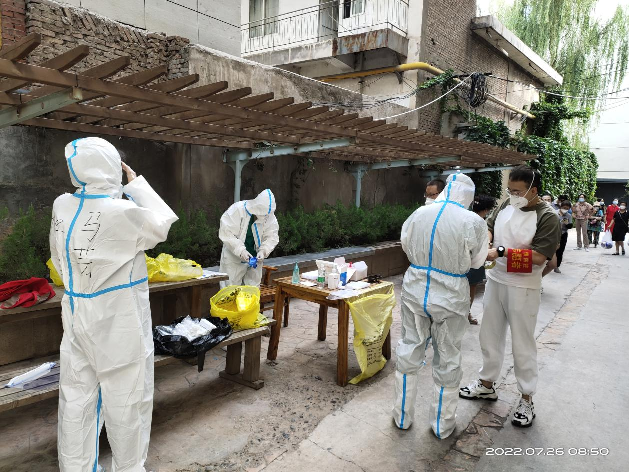 市政工程設(shè)計院工程師劉倩倩,主要負(fù)責(zé)所在小區(qū)的門崗值守及門崗巡查、核酸檢測維持秩序、分貼試管碼等系列工作。穿梭在各個工作點(diǎn),協(xié)調(diào)問題和解決難題,她都游刃有余,一天下來,她的聲音早已經(jīng)沙啞,口罩也擋不住厚重的黑眼圈,但是她總是笑著說,“檢測不結(jié)束,我們不離崗,只要我守住了一個不起眼的崗位,就能守住病毒。雖然有點(diǎn)辛苦,但是心里踏實”。