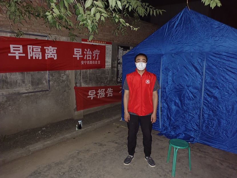 “你好,請問你怎么了,需要去醫(yī)院?請稍等一下,我聯(lián)系下社區(qū)和醫(yī)院陪你去?!边@是志愿者秦彬夜間值班時碰到急需就醫(yī)居民時的對話,最后看到居民得到及時醫(yī)治,他才松了一口氣。疫情期間,秦彬在老舊管控小區(qū)進(jìn)行夜間值班,防止人員出入,減少疫情傳播,在此期間他經(jīng)歷了不少的挑戰(zhàn)。值班區(qū)沒有電,也沒有相應(yīng)生活設(shè)施,他每晚都與大批蚊子“共舞”;在狂風(fēng)暴雨的夜晚,由于僅有的帳篷被大風(fēng)吹走,他冒雨緊急加固,最后都成了“落湯雞”。盡管困難重重,但秦彬一直堅(jiān)守崗位,勇敢擔(dān)當(dāng),為自己在抗疫中能夠貢獻(xiàn)自己的一份力量覺得欣慰,他說:“看到確診人數(shù)每天都在下降,距離勝利的時候不遠(yuǎn)了,我深深地感到,人民群眾的生命安全才是最重要的,沒有什么困難挺不過去,也沒有什么困難戰(zhàn)勝不了”。