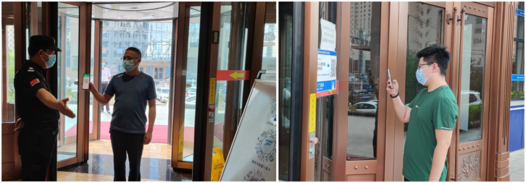 嚴守“入口關(guān)”。在辦公樓入口處,安保人員嚴格做到“一掃三查”,查看職工佩戴口罩,查驗健康碼和行程碼,進行體溫檢測,最大限度地阻斷輸入性疫情風險。