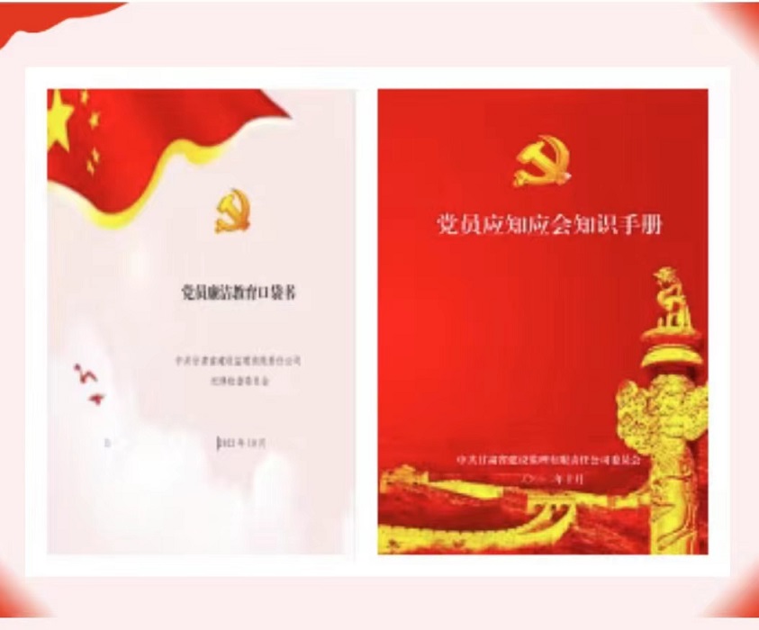 活動中,建設(shè)監(jiān)理公司黨委還為黨員精心制作了《黨員廉潔教育口袋書》及《黨員應(yīng)知應(yīng)會知識手冊》,篩選出黨紀黨規(guī)、黨建常識、名言警句、家風家教、廉潔從業(yè)等各方面的常用知識,方便黨員學(xué)習(xí)使用。此次系列黨建活動不但拓展了黨員干部職工的學(xué)習(xí)途徑,豐富了黨建宣傳形式,更有助于進一步提升黨員的政治素質(zhì)和對黨建工作的認知,凝聚廉政廉潔、風清氣正的思想共識。
