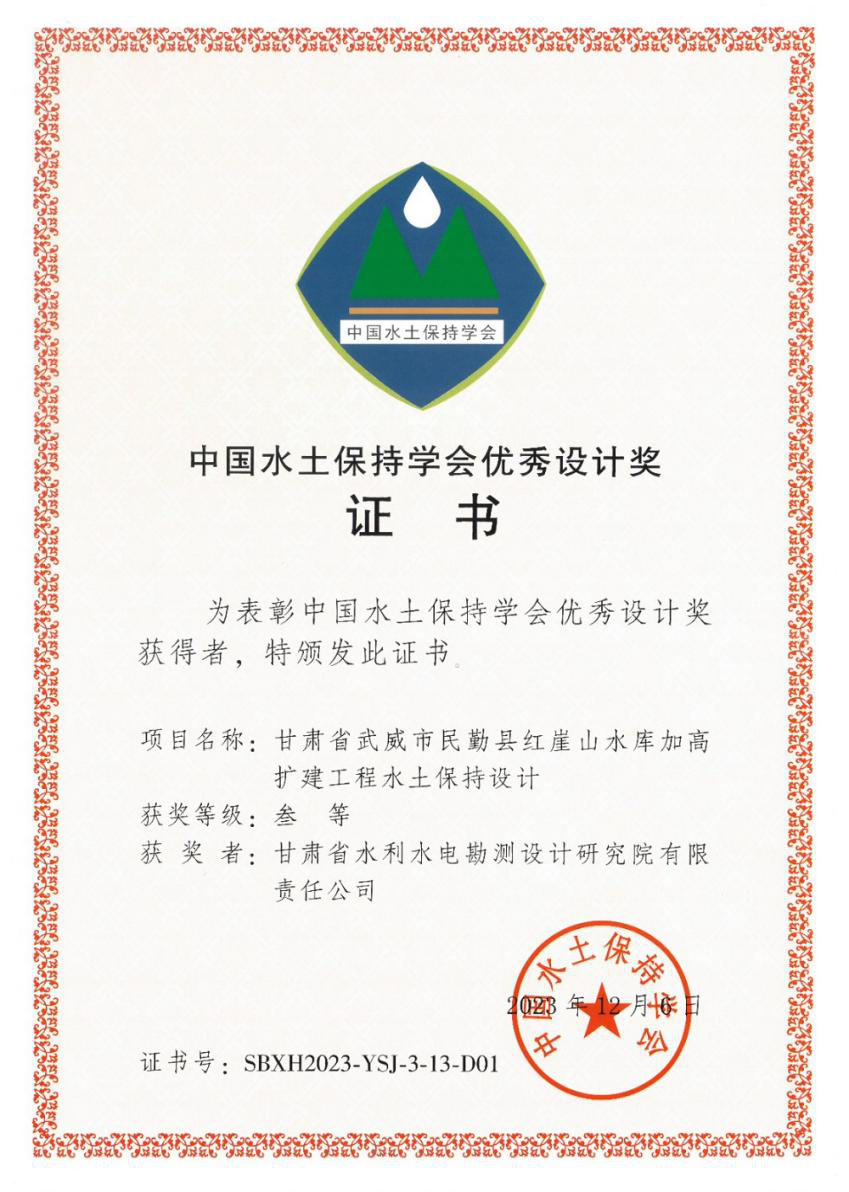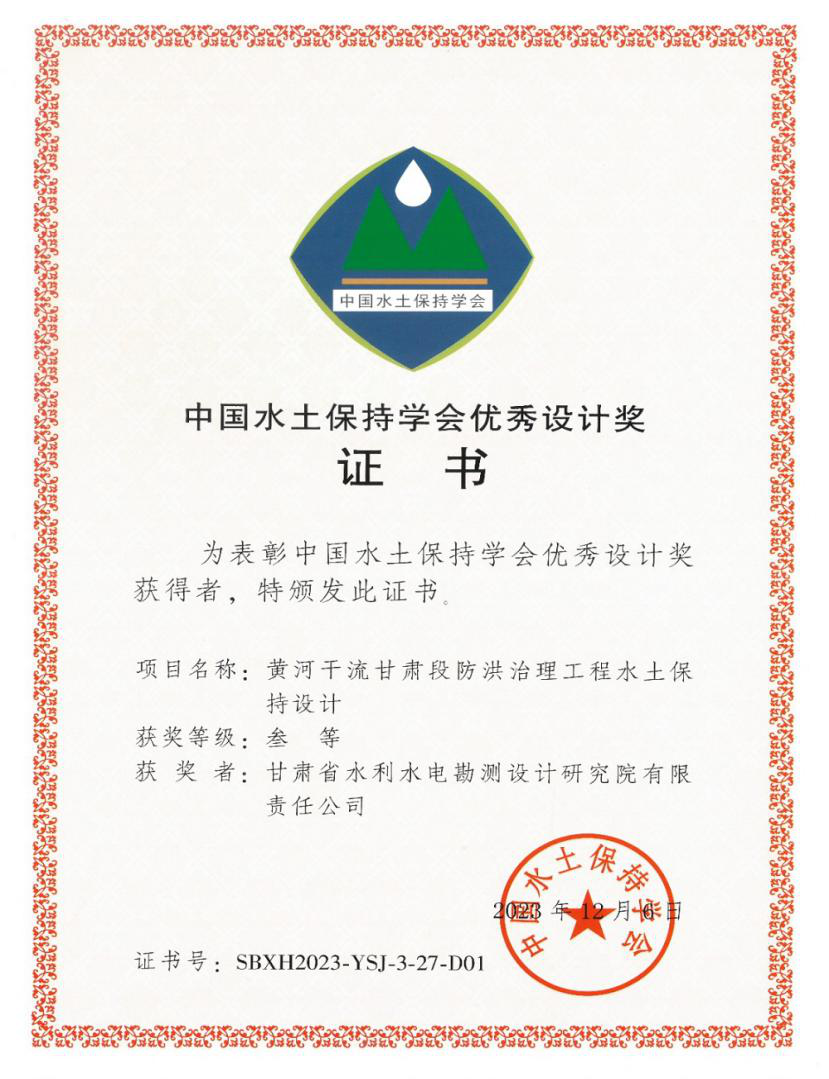 據(jù)悉,這是繼《甘肅省引洮供水一期工程水土保持設(shè)計(jì)》獲第三屆中國水土保持學(xué)術(shù)大會(huì)優(yōu)秀設(shè)計(jì)二等獎(jiǎng)后,再次喜獲此獎(jiǎng)項(xiàng)。中國水土保持學(xué)術(shù)大會(huì)制度自2018年建立以來,中國水土保持學(xué)會(huì)搭建了我國水土保持領(lǐng)域規(guī)模最大、水平最高的學(xué)術(shù)交流平臺(tái),現(xiàn)已成為中國水土保持學(xué)術(shù)交流的重要品牌。中國水土保持學(xué)會(huì)優(yōu)秀設(shè)計(jì)獎(jiǎng)每?jī)赡暝u(píng)選一次,主要獎(jiǎng)勵(lì)我國在水土保持規(guī)劃與設(shè)計(jì)領(lǐng)域中技術(shù)先進(jìn)、成效顯著、理念創(chuàng)新的項(xiàng)目成果。